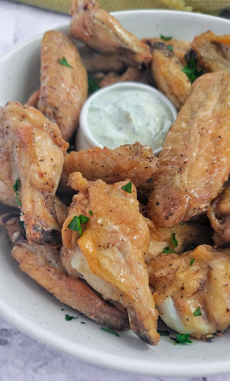 PRO TIP: Lightly re-season the wings as soon as they come out of the air fryer and while they’re still hot. This will help the seasonings better stick to the crispy skin.