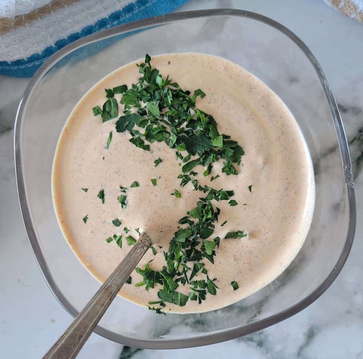 - Greek Yogurt: Adds that classic tang and a slightly thicker consistency that plays perfectly with the mayo. It also helps mellow out the spice from the blackened seasoning without losing the bold flavour. You can use sour cream instead, if you prefer. Either way, full fat works best in this blackened ranch sauce recipe.