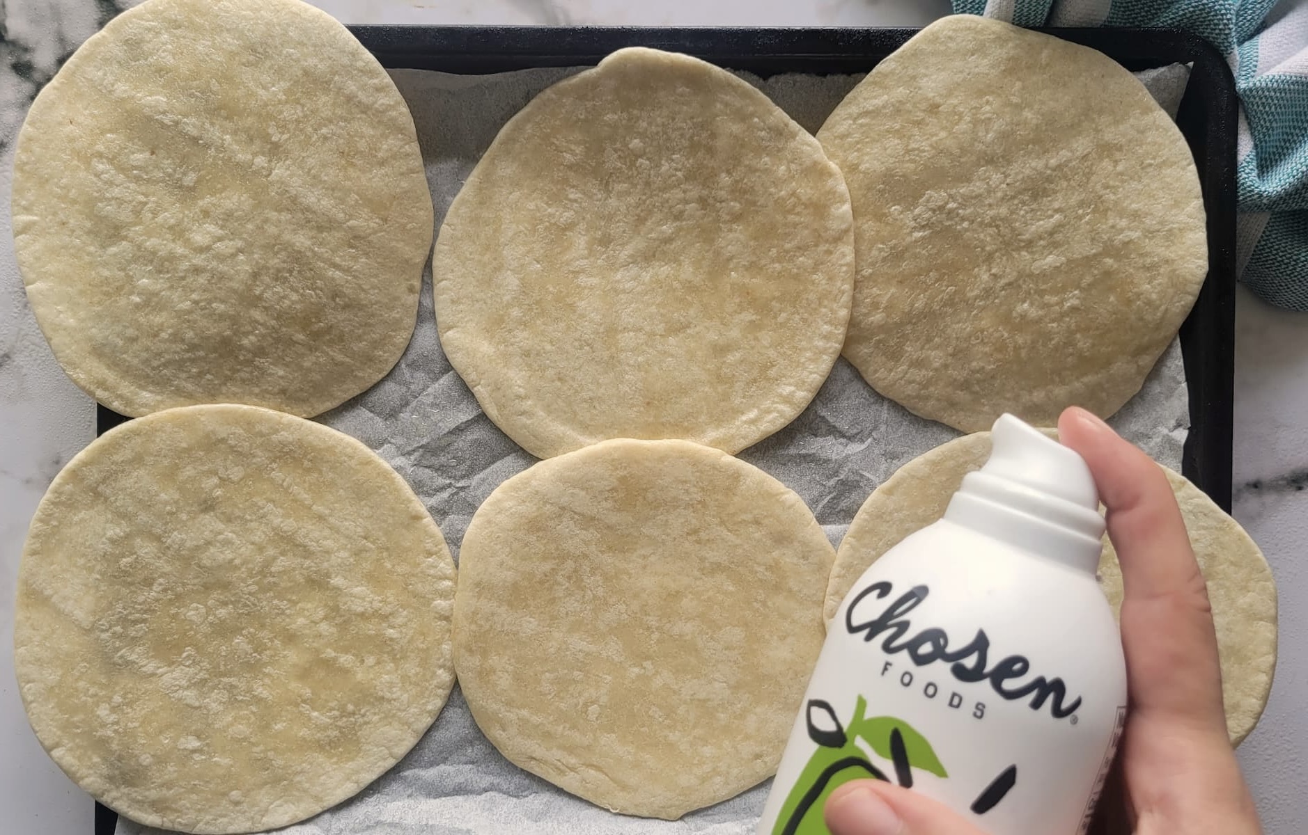 - Preheat your oven to 375°F (190°C). Lightly brush or spray both sides of the mini flour tortillas with olive oil. This will help them crisp up nicely.