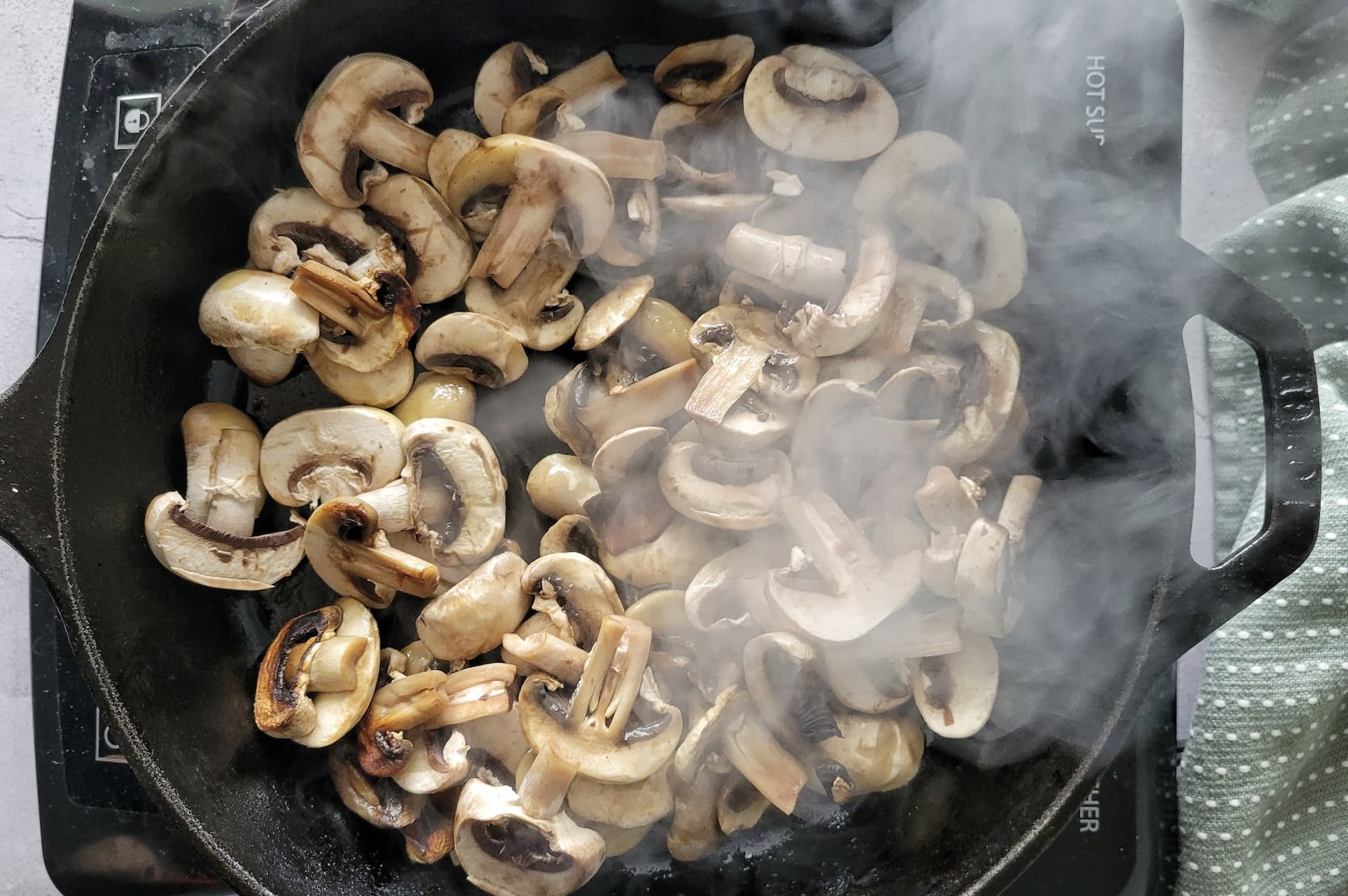 - In a large skillet, heat 2 tbsp olive oil over medium-high heat. Add the mushrooms and cook undisturbed for 3-4 minutes until golden brown. Stir and cook another 2 minutes.